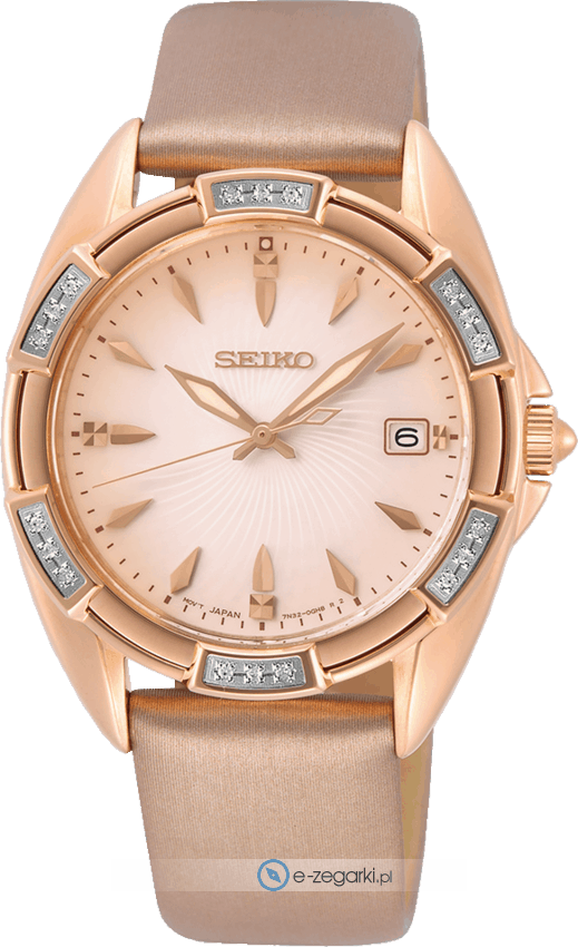 Zegarek damski SKK726P1 marki Seiko to idealne połączenie funkcjonalności oraz modnego wzornictwa. Atrakcyjny wygląd czasomierza osiągnięto m.in. poprzez cyferblat w kolorze różowo złotym. Zegarek ten pokazuje aktualny czas w formacie analogowym dzięki temu odczyt jest bardzo łatwy. Koperta szeroka jest na 34 mm oraz ma grubość 8 mm - ma okrągły kształt.