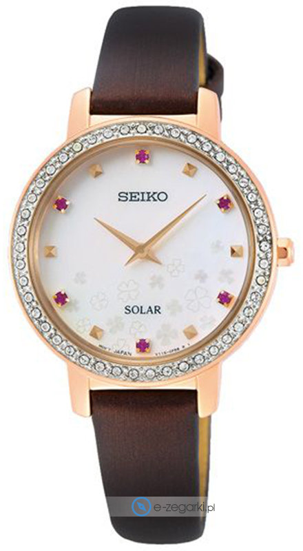 Zegarek damski SUP450P1 marki Seiko to dobra propozycja dla ludzi ceniących sobie dbałość o szczegóły jak również bezproblemowe działanie mechanizmów. Charakterystyczną konstrukcję czasomierza osiągnięto dzięki tarczy w kolorze białym. Zegarek ten prezentuje aktualny czas w formacie analogowym dzięki temu odczyt jest intuicyjny. Koperta jest ozdobiona kolorem różowo złotym szeroka jest na 31 mm oraz ma grubość 7 mm - w kształcie okrągłym.