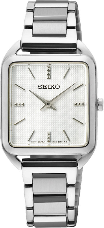 Damski zegarek Seiko SWR073P1 to zegarek, który dzięki swemu wzornictwu zawsze będzie prezentował się dobrze. Charakter zapewnia wysokiej jakości cyferblat w kolorze srebrnym. Aktualna godzina przedstawiona jest w sposób analogowy co intuicyjnie pozwala ją odczytać. Koperta jest w kolorze srebrnym szeroka jest na 26 mm oraz ma grubość 6 mm - posiada prostokątny kształt.