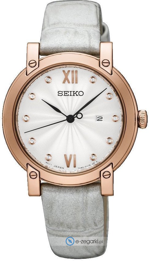 Model SXDG82P1 marki Seiko to elegancki zegarek naręczny damski, który posiada pomysłowe rozwiązania oraz funkcje. Nieschematyczny wygląd czasomierza uzyskano dzięki tarczy w kolorze jasnym. Koperta o grubości 7 mm.