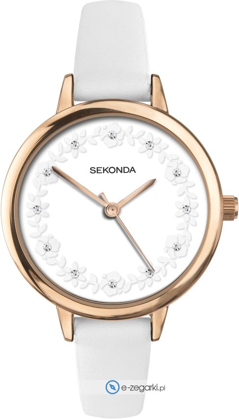Zegarek damski 2817.00 marki Sekonda to dobre połączenie funkcjonalności i modnego designu. Wysokiej jakości tarczę zegarka pokryto białym kolorem. Pokazana metodą analogową bieżąca godzina jest czytelna i szybka do sprawdzenia. Koperta szeroka jest na 34 mm oraz ma grubość 7 mm - w kształcie okrągłym.