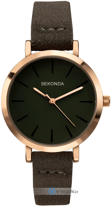 Zegarek damski 40300.00 marki Sekonda to idealne połączenie funkcjonalności a także ciekawego wzornictwa. Charakteru dodaje wysokiej klasy cyferblat w kolorze zielonym. Zegarek ten prezentuje godzinę w formacie analogowym dzięki czemu odczyt jest bezproblemowy. Koperta jest ozdobiona kolorem różowo złotym szeroka jest na 37 mm oraz ma grubość 9 mm - w kształcie okrągłym.