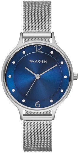 Damski zegarek SKW2307 z kolekcji Skagen Anita marki Skagen to połączenie smaku oraz oryginalnych funkcji. Wysokiej jakości cyferblat zegarka pokryto ciemnym kolorem. Pokazana metodą analogową aktualna godzina jest czytelna i szybka do sprawdzenia. Koperta jest w kolorze srebrnym szeroka jest na 30 mm oraz ma grubość 7 mm - w kształcie okrągłym.