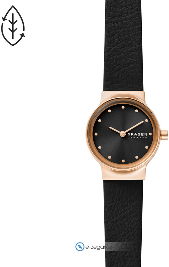 Model damski SKW3004 marki Skagen należy do rodziny Skagen Freja. Niebanalną stylistykę czasomierza osiągnięto z pomocą tarczy w kolorze czarnym. Zegarek ten pokazuje godzinę w formacie analogowym dzięki czemu odczyt jest intuicyjny. Koperta szeroka jest na 26 mm oraz ma grubość 6 mm - w kształcie okrągłym.