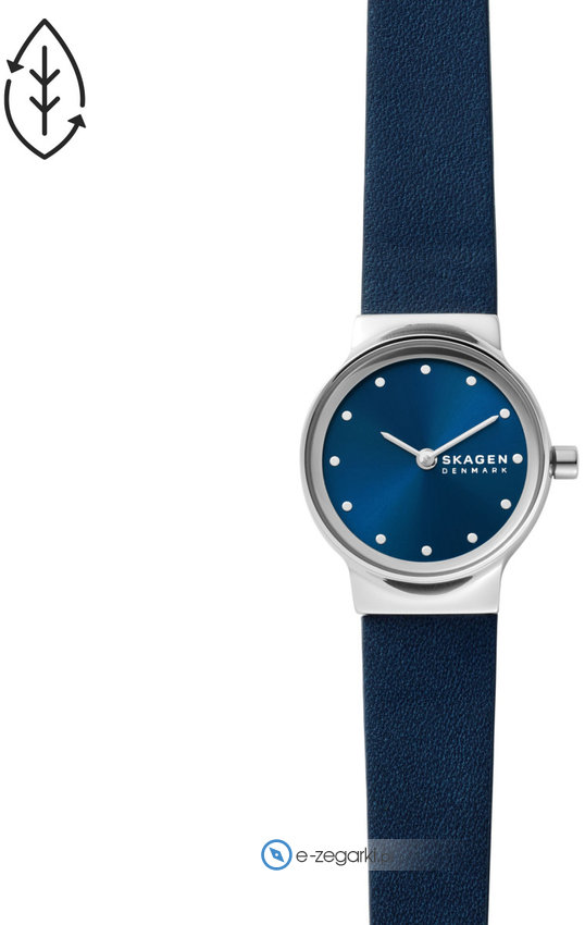 Model damski SKW3007 marki Skagen z serii Skagen Freja. Cyferblat zegarka jest w kolorze niebieskim. Aktualna godzina pokazywana jest w sposób analogowy co niezmiernie łatwo pozwala ją odczytać. Koperta została pokryta kolorem srebrnym szeroka jest na 26 mm oraz ma grubość 6 mm - posiada okrągły kształt.