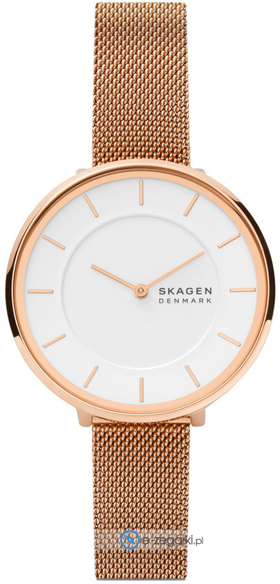 Zegarek damski SKW3013 marki Skagen z serii Skagen Gitte. Aktualna godzina przedstawiona jest w sposób analogowy co bez trudu pozwala ją odczytać. Koperta szeroka jest na 38 mm oraz ma grubość 7 mm - w kształcie okrągłym.
