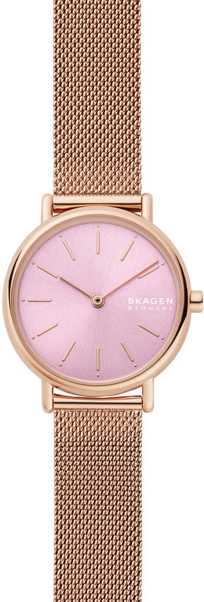 Zegarek damski SKW2975 marki Skagen to stylowe połączenie funkcjonalności oraz modnego designu. Model ten w gamie innych zegarków tego producenta występuje w kolekcji Skagen Signatur. Styl zapewnia wysokiej klasy cyferblat w kolorze różowym. Aktualna godzina zaprezentowana jest w sposób analogowy co intuicyjnie pozwala ją odczytać. Koperta szeroka jest na 30 mm - w kształcie okrągłym.