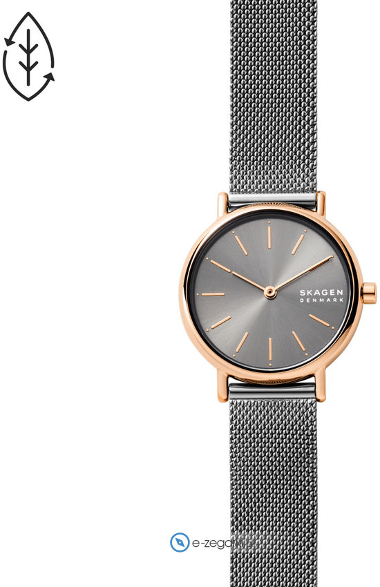 Damski zegarek SKW2996 z serii Skagen Signatur marki Skagen to połączenie estetyki i nowatorskich mechanizmów. Niestereotypowy wygląd zegarka osiągnięto również dzięki tarczy w kolorze szarym. Pokazana metodą analogową bieżąca godzina jest czytelna i prosta do odczytania. Koperta szeroka jest na 30 mm oraz ma grubość 6 mm - posiada okrągły kształt.