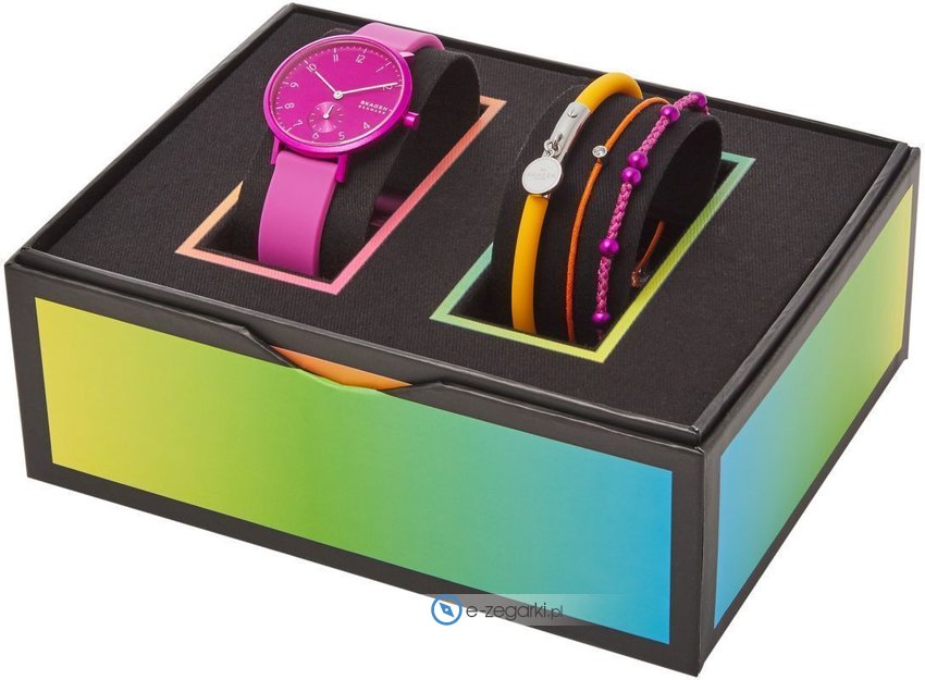 Zegarek damski SKW1125 marki Skagen to dobre połączenie funkcjonalności i ciekawego designu. Stylu nadaje wysokiej klasy cyferblat w kolorze różowym. Godzina zaprezentowana jest w sposób analogowy co niezmiernie łatwo pozwala ją odczytać. Koperta została pokryta kolorem różowym szeroka jest na 36 mm oraz ma grubość 9 mm - ma okrągły kształt.