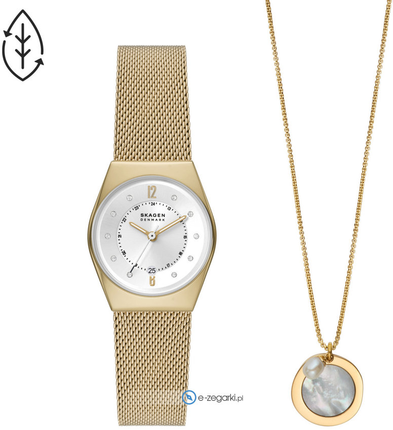 Damski zegarek Skagen SKW1152SET to zegarek, który dzięki swemu wzornictwu zawsze będzie prezentował się dobrze. Ciekawą stylistykę czasomierza uzyskano z pomocą tarczy w kolorze srebrnym. Zegarek ten prezentuje aktualny czas w formacie analogowym dzięki temu odczyt jest bezproblemowy. Koperta jest w kolorze złotym szeroka jest na 26 mm - charakteryzuje się okrągłym kształtem.