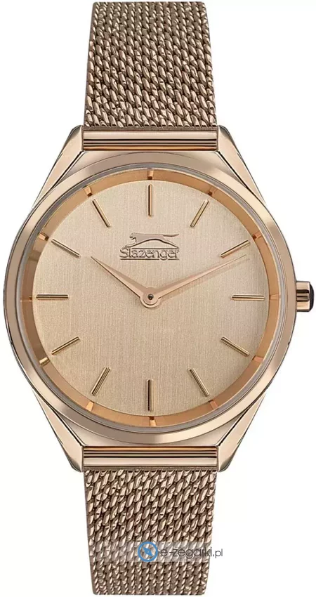 Damski zegarek Slazenger SL.09.1852.3.02 to zegarek, który dzięki swemu wzornictwu zawsze będzie prezentował się dobrze. Ciekawy wygląd czasomierza osiągnięto także dzięki tarczy w kolorze różowo złotym. Zegarek ten prezentuje godzinę w formacie analogowym dzięki czemu odczyt jest bardzo łatwy. Koperta jest pokryta kolorem różowo złotym szeroka jest na 32 mm - w kształcie okrągłym.