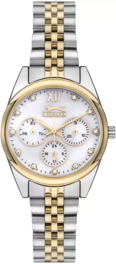 Zegarek damski SL.09.1990.4.03 marki Slazenger to stylowe połączenie funkcjonalności i ciekawego wzornictwa. Niestereotypowy wygląd czasomierza osiągnięto również dzięki tarczy w kolorze szarym. Pokazana metodą analogową bieżąca godzina jest czytelna i szybka do odczytania. Koperta jest w kolorze srebrno złotym szeroka jest na 34 mm - w kształcie okrągłym.