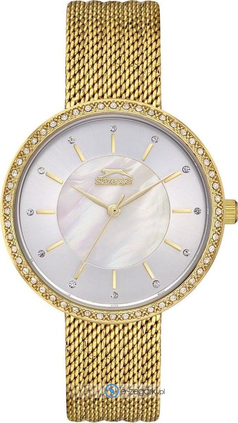 Model SL.09.2049.3.03 marki Slazenger to stylowy zegarek naręczny damski, który posiada ciekawe rozwiązania i funkcje. Styl zapewnia wysokiej klasy tarcza w kolorze srebrnym. Zegarek ten pokazuje aktualny czas w formacie analogowym dzięki czemu odczyt jest bardzo łatwy. Koperta jest w kolorze złotym szeroka jest na 36 mm - w kształcie okrągłym.