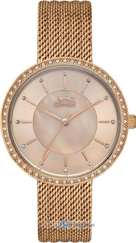 Model SL.09.2049.3.04 marki Slazenger to stylowy zegarek naręczny damski, który wyposażono w ciekawe rozwiązania oraz funkcje. Atrakcyjny wygląd czasomierza uzyskano m.in. poprzez cyferblat w kolorze różowo złotym. Aktualna godzina pokazywana jest w sposób analogowy co niezmiernie łatwo pozwala ją odczytać. Koperta jest w kolorze różowo złotym szeroka jest na 36 mm - ma okrągły kształt.
