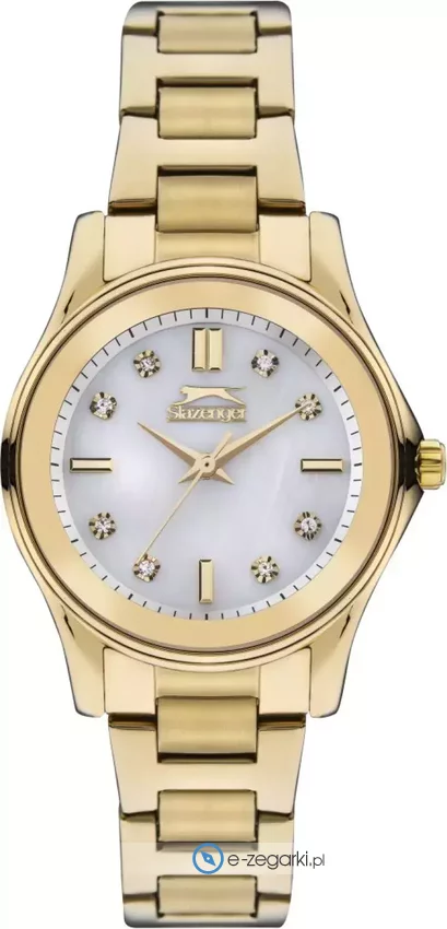 Zegarek damski SL.09.2235.3.06 marki Slazenger to dobra propozycja dla osób ceniących sobie dbałość o detale oraz bezproblemowe działanie mechanizmów. Niebanalną stylistykę zegarka osiągnięto z pomocą tarczy w kolorze białym. Pokazana metodą analogową bieżąca godzina jest czytelna i szybka do sprawdzenia. Koperta jest ozdobiona kolorem złotym szeroka jest na 32 mm - w kształcie okrągłym.