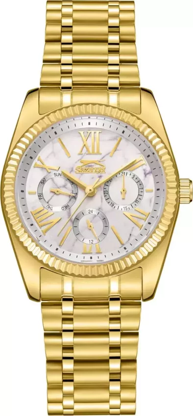 Damski zegarek Slazenger SL.09.2343.4.02 to zegarek, który dzięki swemu wzornictwu zawsze będzie prezentował się dobrze. Stylu nadaje wysokiej jakości tarcza w kolorze białym. Godzina prezentowana jest w sposób analogowy co intuicyjnie pozwala ją odczytać. Koperta jest pokryta kolorem złotym szeroka jest na 36 mm - ma okrągły kształt.