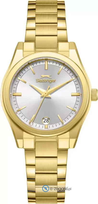 Zegarek damski Slazenger SL.09.2469.3.03 to propozycja dla kobiet ceniących sportowy styl z nutą elegancji. Sportowy charakter tego modelu podkreśla złota bransoleta wykonana ze stali nierdzewnej, która zapewnia trwałość i odporność na korozję. Srebrna tarcza z wyraźnymi indeksami liniowymi gwarantuje czytelność i szybki odczyt czasu. Zegarek ten, dzięki wbudowanemu datownikowi, pozwala na bieżąco kontrolować aktualny dzień miesiąca.