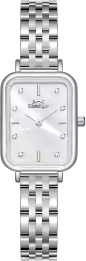 Model SL.09.2549.3.01 marki Slazenger to stylowy zegarek naręczny damski, który posiada pomysłowe rozwiązania i funkcje. Tarcza zegarka jest w kolorze perłowym. Zegarek ten prezentuje godzinę w formacie analogowym dzięki czemu odczyt jest bezproblemowy. Koperta została ozdobiona kolorem srebrnym szeroka jest na 20 mm - cechuje się prostokątnym kształtem.