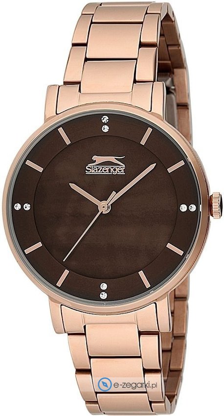 Zegarek damski SL.09.6060.3.03 marki Slazenger to stylowe połączenie funkcjonalności i ciekawego wzornictwa. Charakterystyczny wygląd czasomierza uzyskano poprzez tarczę w kolorze brązowym. Koperta szeroka jest na 35 mm - w kształcie okrągłym.