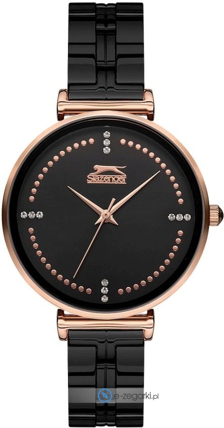 Model SL.09.6154.3.01 marki Slazenger to gustowny zegarek naręczny damski, który jest wyposażony w pomysłowe rozwiązania oraz funkcje. Charakterystyczną stylistykę czasomierza uzyskano dzięki tarczy w kolorze czarnym. Koperta szeroka jest na 34 mm - w kształcie okrągłym.