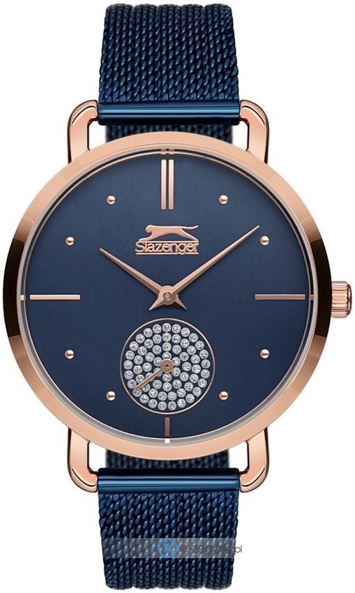 Damski zegarek Slazenger SL.09.6176.3.01 to zegarek, który dzięki swemu wzornictwu zawsze będzie prezentował się dobrze. Charakteru dodaje wysokiej jakości cyferblat w kolorze granatowym. Zaprezentowana metodą analogową aktualna godzina jest czytelna i łatwa do odczytania. Koperta szeroka jest na 36 mm - ma okrągły kształt.