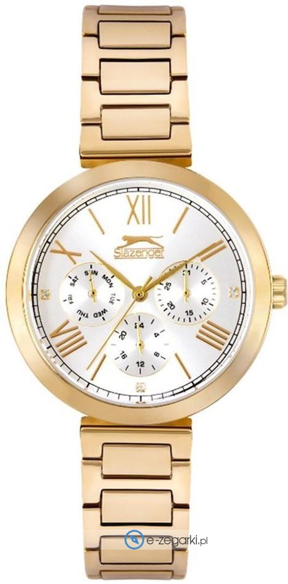 Damski zegarek Slazenger SL.09.6232.4.03 to zegarek, który dzięki swemu wzornictwu zawsze będzie prezentował się dobrze. Styl zapewnia wysokiej jakości tarcza w kolorze perłowym. Zegarek ten prezentuje aktualny czas w formacie analogowym dzięki temu odczyt jest bardzo łatwy. Koperta jest w kolorze złotym szeroka jest na 36 mm - w kształcie okrągłym.