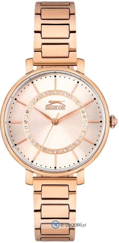 Zegarek damski SL.09.6245.3.03 marki Slazenger to idealna pozycja dla ludzi ceniących sobie dbałość o szczegóły oraz bezawaryjne działanie mechanizmów. Stylu dodaje wysokiej klasy cyferblat w kolorze różowo złotym. Zegarek ten pokazuje aktualny czas w formacie analogowym dzięki temu odczyt jest bardzo łatwy. Koperta szeroka jest na 35 mm - posiada okrągły kształt.