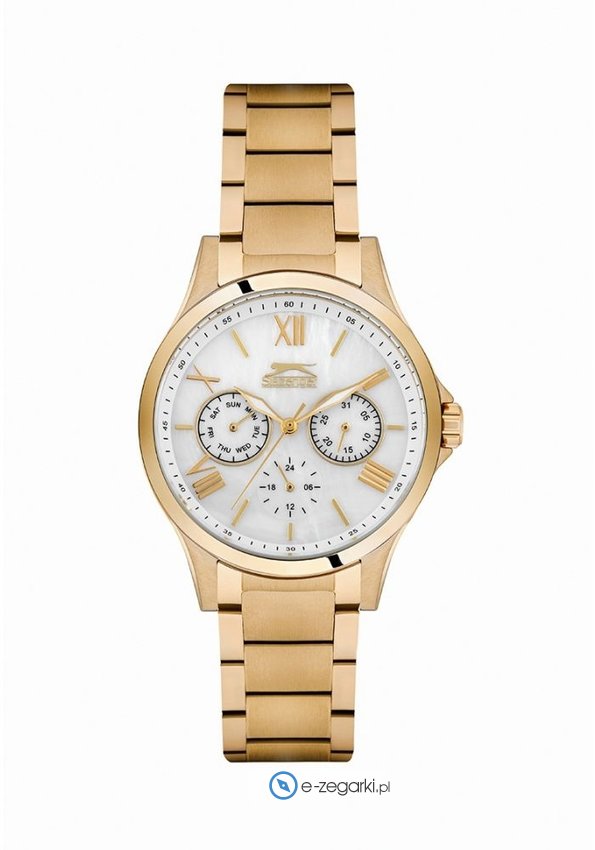 Zegarek damski SL.09.6272.4.01 marki Slazenger to idealna pozycja dla osób ceniących sobie dbałość o detale oraz bezproblemowe zachowanie mechanizmów. Charakter zapewnia wysokiej klasy tarcza w kolorze złotym. Zaprezentowana metodą analogową bieżąca godzina jest czytelna i prosta do odczytania. Koperta jest w kolorze złotym szeroka jest na 36 mm - posiada okrągły kształt.