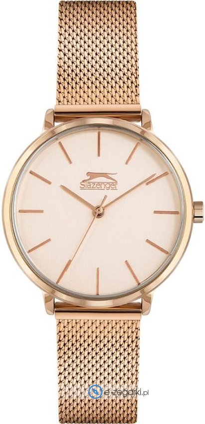 Zegarek damski SL.09.6291.3.05 marki Slazenger to idealna pozycja dla ludzi ceniących sobie dbałość o szczegóły a także sprawne zachowanie mechanizmów. Niestereotypowy wygląd czasomierza osiągnięto także dzięki tarczy w kolorze różowo złotym. Godzina zaprezentowana jest w sposób analogowy co niezmiernie łatwo pozwala ją odczytać. Koperta szeroka jest na 35 mm - w kształcie okrągłym.