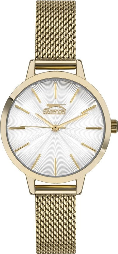 Zegarek damski SL.09.6329.3.03 marki Slazenger to dobre połączenie funkcjonalności a także ciekawego designu. Tarcza zegarka jest w kolorze perłowym. Zegarek ten prezentuje aktualny czas w formacie analogowym dzięki temu odczyt jest bezproblemowy. Koperta w barwach koloru złotego szeroka jest na 32 mm - w kształcie okrągłym.
