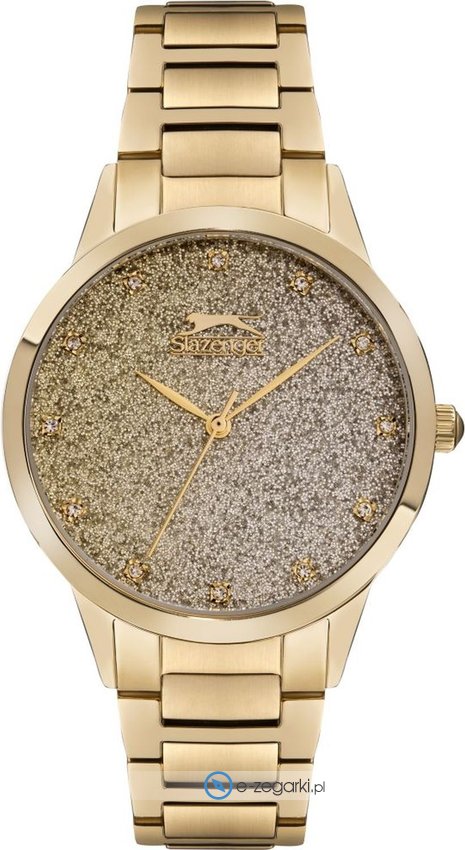 Damski zegarek Slazenger SL.09.6331.3.01 to zegarek, który dzięki swemu wzornictwu zawsze będzie prezentował się dobrze. Stylu dodaje wysokiej klasy cyferblat w kolorze złotym. Aktualna godzina zaprezentowana jest w sposób analogowy co bez trudu pozwala ją odczytać. Koperta w barwach koloru złotego szeroka jest na 35 mm - w kształcie okrągłym.
