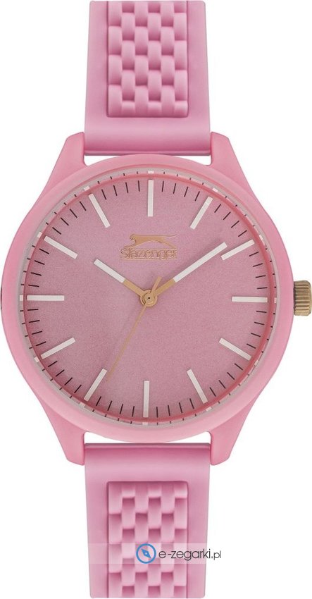 Model SL.09.6370.3.01 marki Slazenger to stylowy zegarek naręczny damski, który wyposażono w ciekawe rozwiązania i funkcje. Wysokiej trwałości cyferblat zegarka pokryto różowym kolorem. Zegarek ten pokazuje godzinę w formacie analogowym dzięki temu odczyt jest intuicyjny. Koperta szeroka jest na 36 mm - ma okrągły kształt.