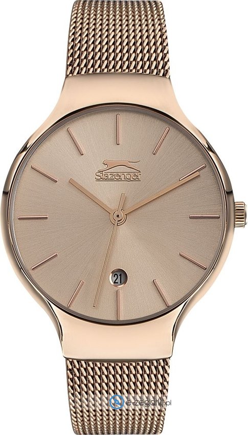 Model SL.09.6414.3.02 marki Slazenger to gustowny zegarek naręczny damski, który wyposażono w pomysłowe rozwiązania oraz funkcje. Charakterystyczną stylistykę czasomierza uzyskano dzięki tarczy w kolorze różowo złotym. Zegarek ten pokazuje godzinę w formacie analogowym dzięki czemu odczyt jest intuicyjny. Koperta w barwach koloru różowo złotego szeroka jest na 32 mm - w kształcie okrągłym.