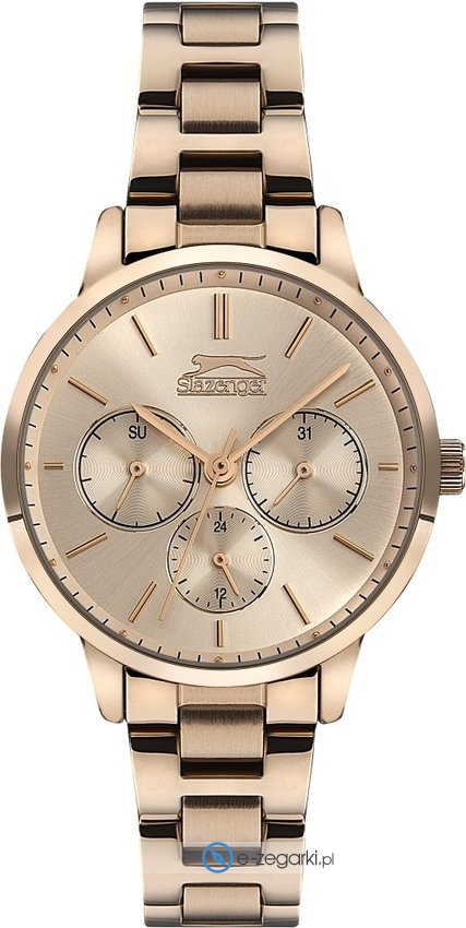 Model SL.09.6415.4.02 marki Slazenger to elegancki zegarek naręczny damski, który posiada pomysłowe rozwiązania oraz funkcje. Ciekawą konstrukcję czasomierza osiągnięto z pomocą tarczy w kolorze różowo złotym. Zegarek ten prezentuje godzinę w formacie analogowym dzięki czemu odczyt jest bardzo łatwy. Koperta w barwach koloru różowo złotego szeroka jest na 36 mm - posiada okrągły kształt.