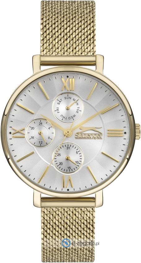 Zegarek damski SL.09.6543.4.02 marki Slazenger to idealna pozycja dla ludzi ceniących sobie dbałość o szczegóły jak również sprawne funkcjonowanie mechanizmów. Charakterystyczny wygląd czasomierza osiągnięto m.in. poprzez tarczę w kolorze srebrnym. Zegarek ten prezentuje aktualny czas w formacie analogowym dzięki czemu odczyt jest bardzo łatwy. Koperta jest ozdobiona kolorem złotym szeroka jest na 36 mm - cechuje się okrągłym kształtem.