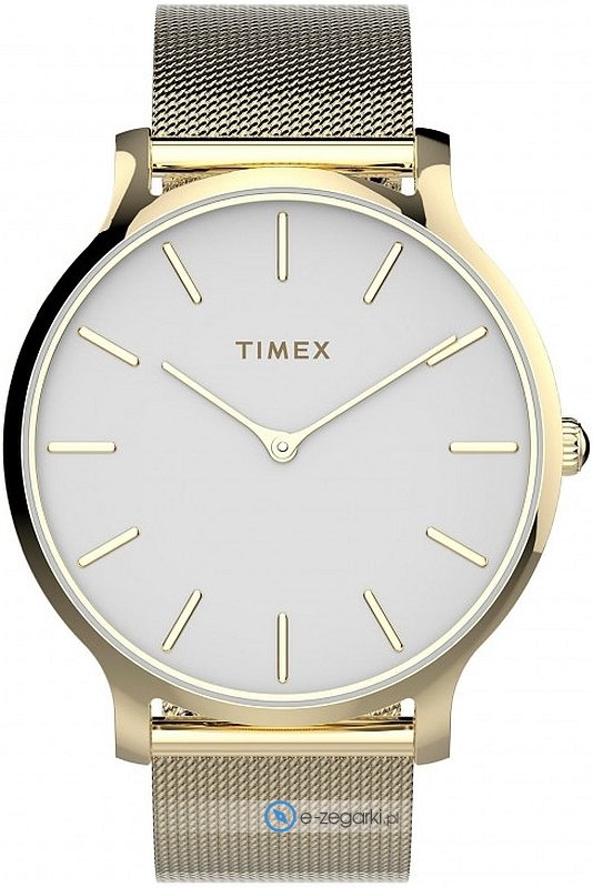 Model TW2T74100 marki Timex to gustowny zegarek naręczny damski, który wyposażono w pomysłowe rozwiązania oraz funkcje. Atrakcyjny wygląd czasomierza uzyskano m.in. poprzez cyferblat w kolorze białym. Zegarek ten pokazuje aktualny czas w formacie analogowym dzięki temu odczyt jest intuicyjny. Koperta jest w kolorze złotym szeroka jest na 38 mm oraz ma grubość 7 mm - ma okrągły kształt.