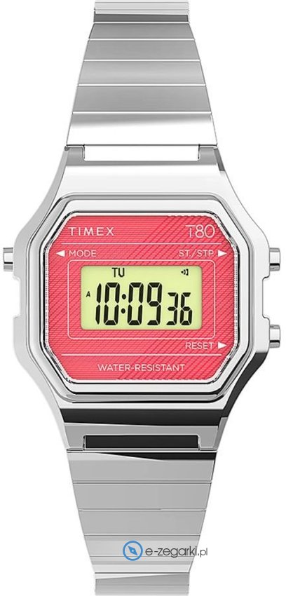 Zegarek damski TW2U94200 marki Timex to stylowe połączenie funkcjonalności i ciekawego designu. Tarcza zegarka jest w kolorze różowym. Godzina pokazywana jest w sposób cyfrowy co niezmiernie łatwo pozwala ją odczytać. Koperta została ozdobiona kolorem srebrnym szeroka jest na 27 mm oraz ma grubość 9 mm - wyróżnia się prostokątnym kształtem.