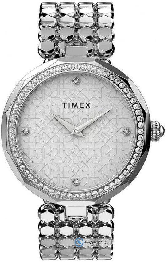 Zegarek damski TW2V02600 marki Timex to stylowe połączenie funkcjonalności i modnego designu. Charakterystyczną stylistykę zegarka osiągnięto dzięki tarczy w kolorze srebrnym. Zegarek ten prezentuje aktualny czas w formacie analogowym dzięki temu odczyt jest bardzo łatwy. Koperta została pokryta kolorem srebrnym szeroka jest na 34 mm oraz ma grubość 9 mm - w kształcie okrągłym.