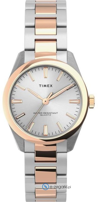 Model TW2V26500 marki Timex to stylowy zegarek naręczny damski, który posiada ciekawe rozwiązania oraz funkcje. Stylu nadaje wysokiej jakości tarcza w kolorze srebrnym. Godzina prezentowana jest w sposób analogowy co intuicyjnie pozwala ją odczytać. Koperta w barwach koloru różowo złotego szeroka jest na 32 mm oraz ma grubość 9 mm - charakteryzuje się okrągłym kształtem.