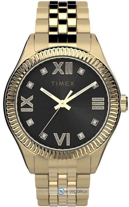 Zegarek damski TW2V45700 marki Timex to stylowe połączenie funkcjonalności i ciekawego designu. Tarcza zegarka jest w kolorze czarnym. Pokazana metodą analogową aktualna godzina jest czytelna i prosta do sprawdzenia. Koperta jest w kolorze złotym szeroka jest na 34 mm - ma okrągły kształt.