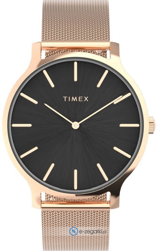 Model TW2W19600 marki Timex to stylowy zegarek naręczny damski, który posiada ciekawe rozwiązania i funkcje. Styl zapewnia wysokiej klasy cyferblat w kolorze czarnym. Zegarek ten pokazuje aktualny czas w formacie analogowym dzięki czemu odczyt jest bezproblemowy. Koperta jest w kolorze różowo złotym szeroka jest na 38 mm oraz ma grubość 7 mm - w kształcie okrągłym.