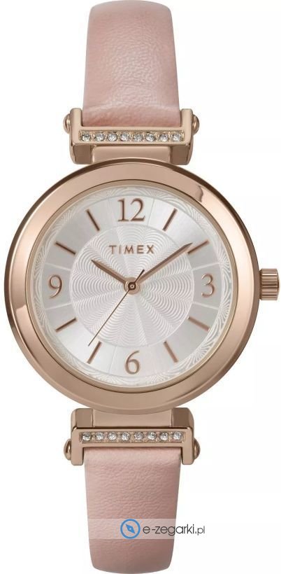 Zegarek damski TW2W96300 marki Timex to propozycja dla kobiet ceniących sobie dbałość o detale oraz niezawodne mechanizmy. Wysokiej jakości tarcza w kolorze srebrnym nadaje mu wyjątkowego charakteru. Analogowy sposób wskazywania czasu sprawia, że odczyt jest niezwykle prosty i intuicyjny. Koperta w odcieniach różowego złota o okrągłym kształcie idealnie komponuje się z całością.