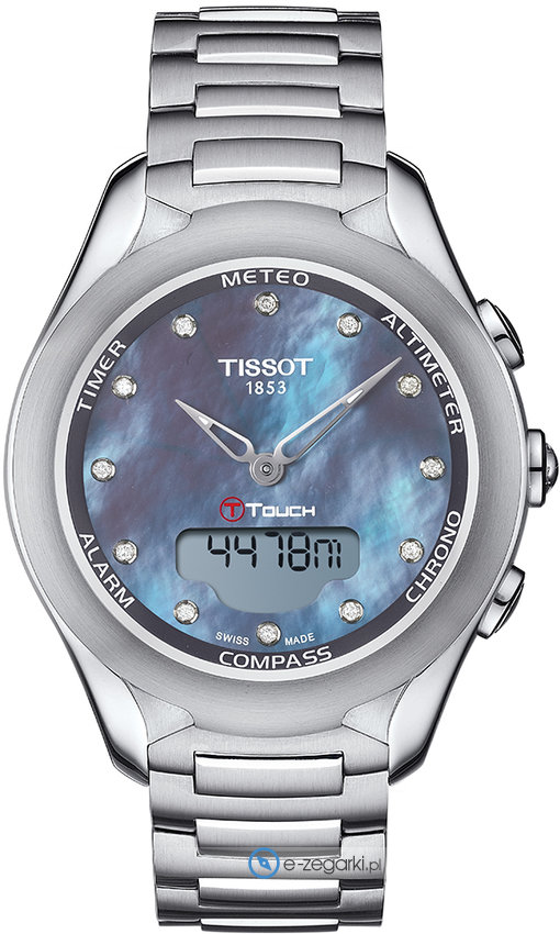 Dodatkowo zegarek Tissot T075.220.11.106.01 posiada funkcje takie jak wysokościomierz pokazujący obecną wysokość nad poziomem morza.