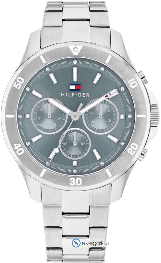 Zegarek damski 1782638 marki Tommy Hilfiger to dobre połączenie funkcjonalności a także ciekawego designu. Model ten w gamie pozostałych zegarków tego producenta występuje w kolekcji Tommy Hilfiger Aspen. Niestereotypowy wygląd zegarka uzyskano m.in. poprzez tarczę w kolorze niebieskim. Zegarek ten prezentuje godzinę w formacie analogowym dzięki czemu odczyt jest bardzo łatwy. Koperta w barwach koloru srebrnego szeroka jest na 38 mm oraz ma grubość 10 mm - posiada okrągły kształt.