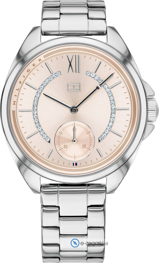 Zegarek damski 1781987 marki Tommy Hilfiger to idealne połączenie funkcjonalności i modnego designu. Model ten w gamie innych zegarków tego producenta występuje w serii Tommy Hilfiger Ava. Charakteru nadaje wysokiej jakości tarcza w kolorze różowo złotym. Koperta jest w kolorze stalowym szeroka jest na 38 mm oraz ma grubość 9 mm - ma okrągły kształt.