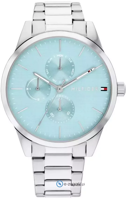 Model damski 1782767 z serii Tommy Hilfiger Camille marki Tommy Hilfiger. Charakterystyczną konstrukcję czasomierza osiągnięto dzięki tarczy w kolorze niebieskim. Zegarek ten pokazuje godzinę w formacie analogowym dzięki czemu odczyt jest intuicyjny. Koperta została ozdobiona kolorem srebrnym szeroka jest na 38 mm oraz ma grubość 9 mm - w kształcie okrągłym.