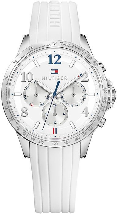 Zegarek damski 1781646 marki Tommy Hilfiger należy do rodziny Dani. Niebanalną stylistykę czasomierza osiągnięto dzięki tarczy w kolorze białym. Koperta jest w kolorze stalowym szeroka jest na 38 mm oraz ma grubość 8 mm - w kształcie okrągłym.