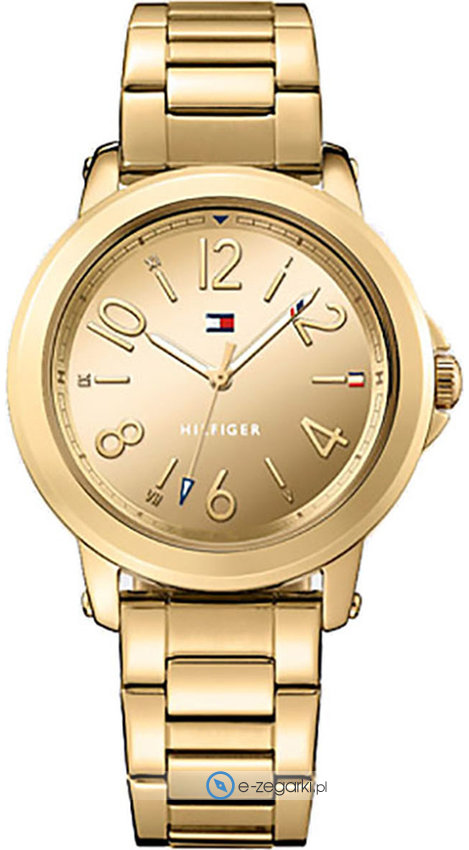 Model damski 1781751 zalicza się do rodziny Tommy Hilfiger Ellie marki Tommy Hilfiger. Niebanalną konstrukcję czasomierza uzyskano z pomocą tarczy w kolorze złotym. Zaprezentowana metodą analogową bieżąca godzina jest czytelna i szybka do sprawdzenia. Koperta jest w kolorze złotym szeroka jest na 38 mm oraz ma grubość 9 mm - w kształcie okrągłym.