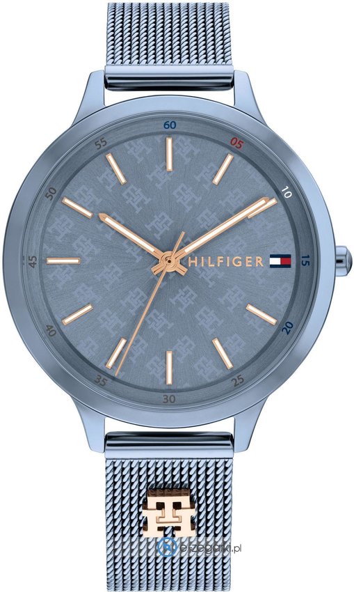 Damski zegarek 1782589 z kolekcji Tommy Hilfiger Iris marki Tommy Hilfiger to połączenie stylu i pomysłowych mechanizmów. Niestereotypowy wygląd czasomierza uzyskano m.in. poprzez cyferblat w kolorze niebieskim. Aktualna godzina przedstawiona jest w sposób analogowy co niezmiernie łatwo pozwala ją odczytać. Koperta została ozdobiona kolorem niebieskim szeroka jest na 36 mm - posiada okrągły kształt.