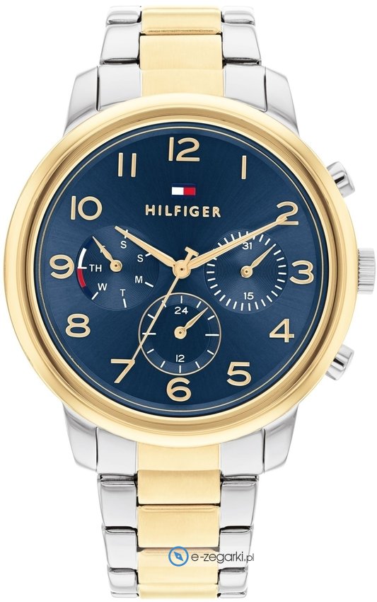 Model 1782524 marki Tommy Hilfiger to gustowny zegarek naręczny damski, który posiada ciekawe rozwiązania oraz funkcje. Atrakcyjny wygląd czasomierza osiągnięto także dzięki tarczy w kolorze granatowym. Godzina pokazywana jest w sposób analogowy co niezmiernie łatwo pozwala ją odczytać. Koperta jest pokryta kolorem stalowym szeroka jest na 38 mm oraz ma grubość 9 mm - w kształcie okrągłym.